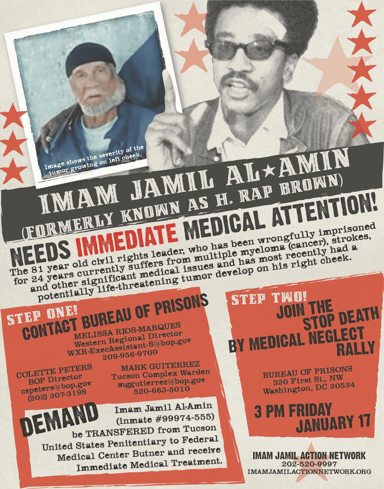 Beloved Political Prisoner of War, Imam Jamil Al-Amin (formerly known as H. Rap Brown) needs our urgent support: Needs Immediate Medical Attention!